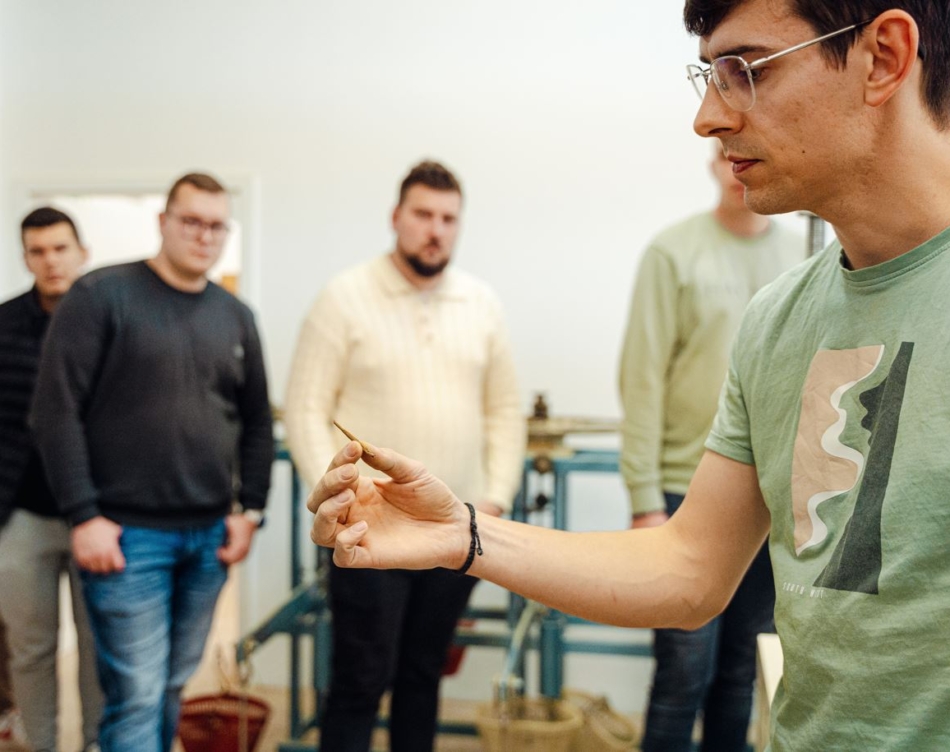 Študenti so si najprej ogledali geomehanski laboratorij ter spoznali potek geotehničnih raziskav in pomen laboratorijskih rezultatov pri načrtovanju gradbenih objektov. Predstavitev je zajemala ključne faze raziskav, od priprave vzorcev do interpretacije rezultatov.