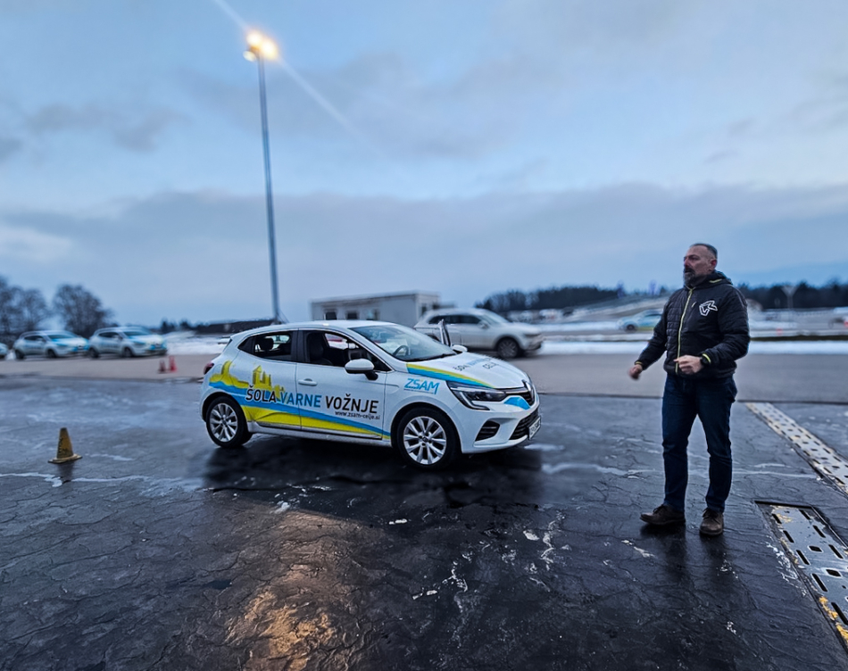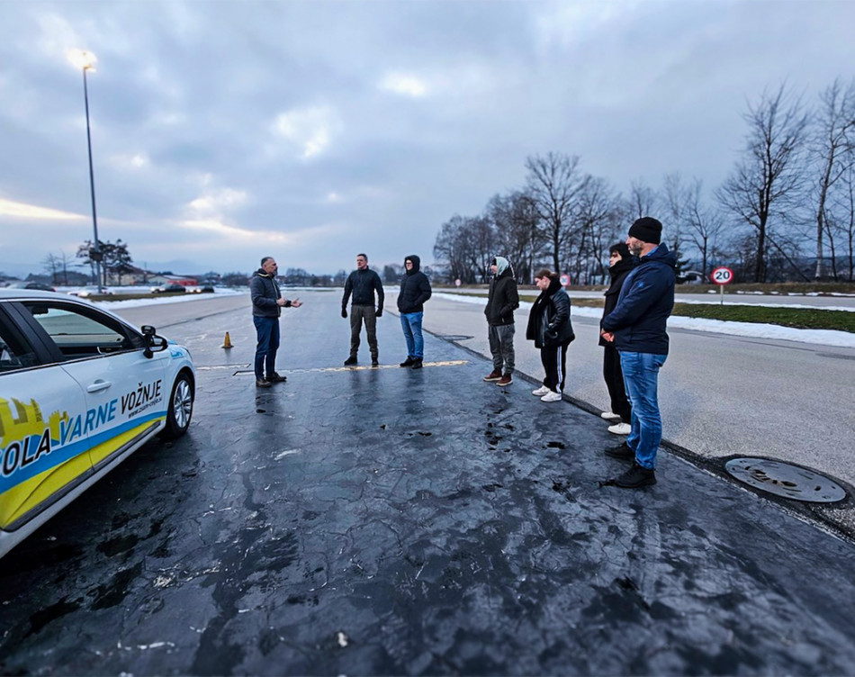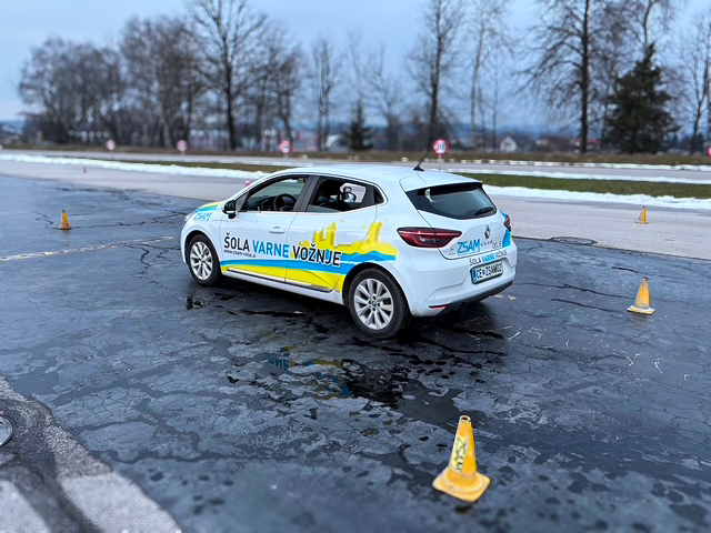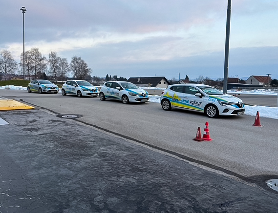 Študenti Varovanja na specialistični vožnji na Avtopoligonu Ljubečna pri Celju