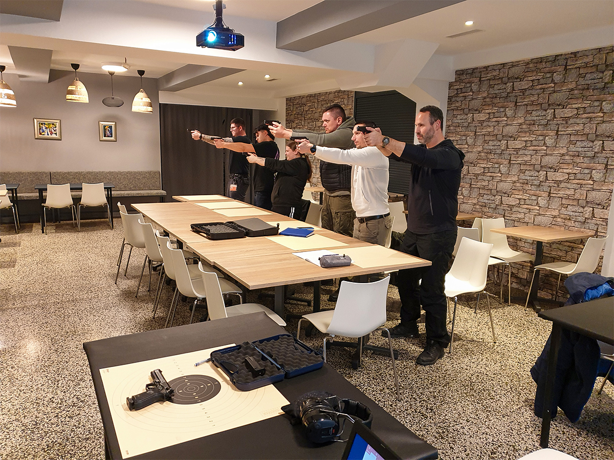 Študenti višješolskega študijskega programa Varovanje so se v sklopu predmeta Oborožitev in streljanje pri predavatelju gospodu Dušanu Gorišku udeležili vaj v Športno rekreacijskem centru “RA-TA-TA…” v Mariboru.